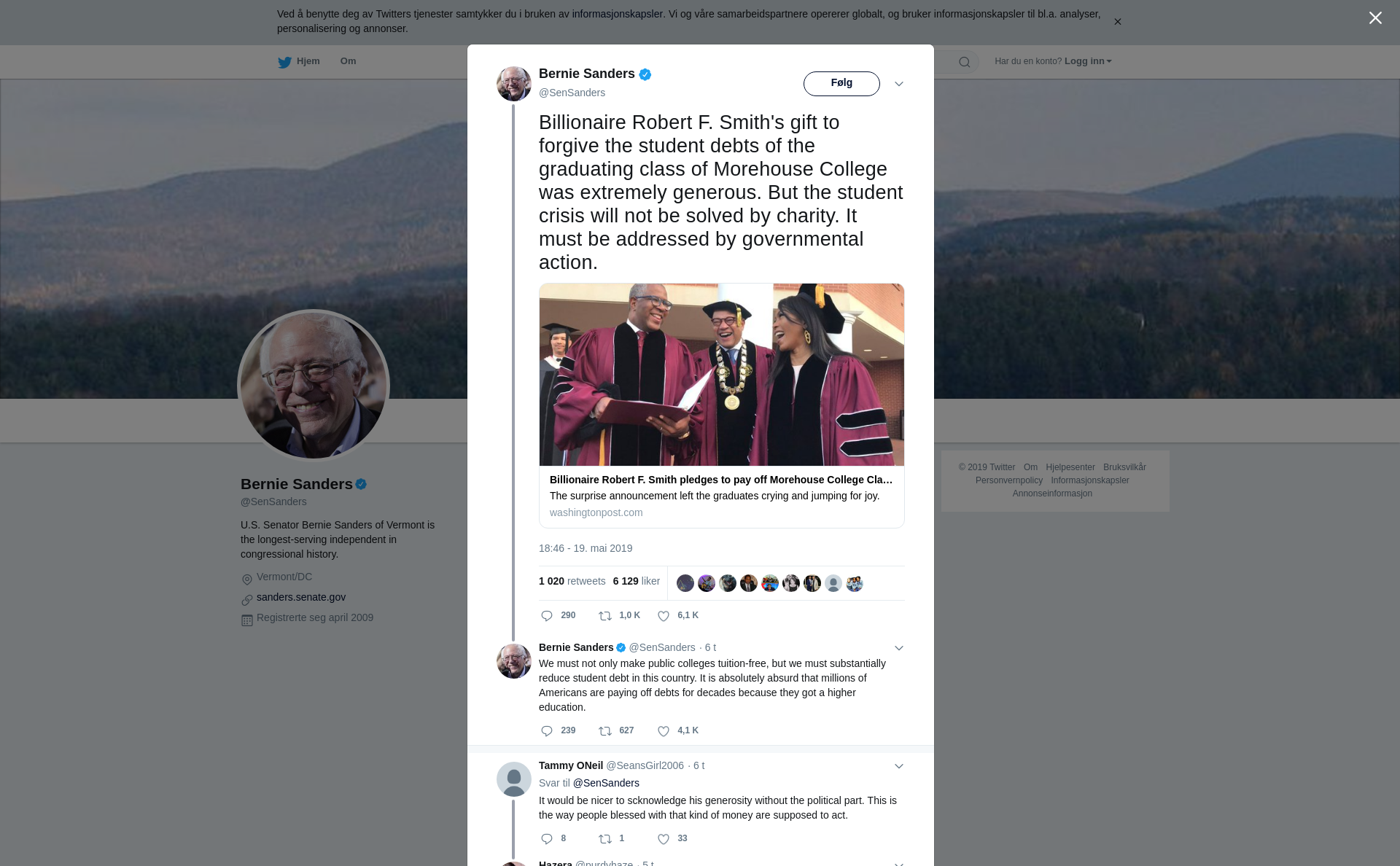 RT @SenSanders: Billionaire Robert F. Smith's gift to forgive the student debts of the graduating class of Morehouse College was extremely generous. But the student crisis will not be solved by charity. It must be addressed by governmental action. https://t.co/hnbVuscke6