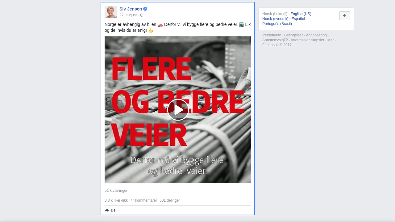 Norge er avhengig av bilen 🚗 Derfor vil vi bygge flere og bedre veier 🛣️ Lik og del hvis du er enig! 👍