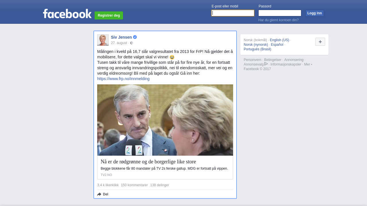 Målingen i kveld på 16,7 slår valgresultatet fra 2013 for FrP! Nå gjelder det å mobilisere, for dette valget skal vi vinne! 😀