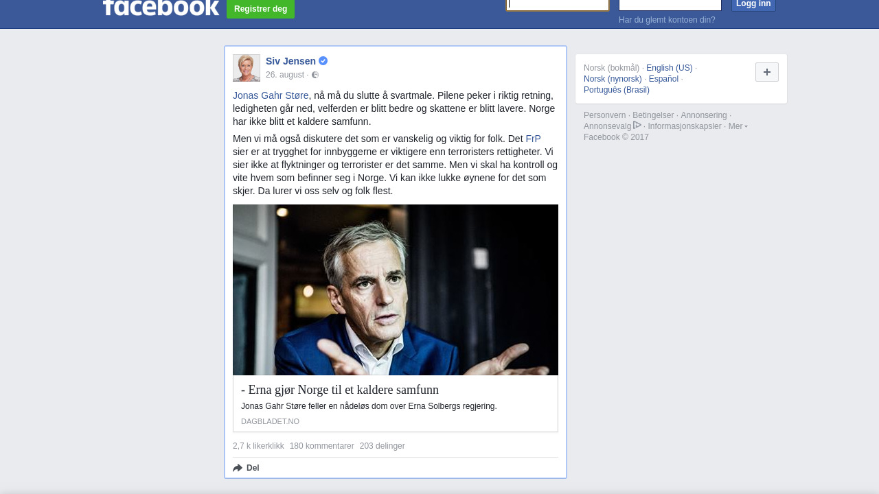 Jonas Gahr Støre, nå må du slutte å svartmale. Pilene peker i riktig retning, ledigheten går ned, velferden er blitt bedre og skattene er blitt lavere. Norge har ikke blitt et kaldere samfunn.