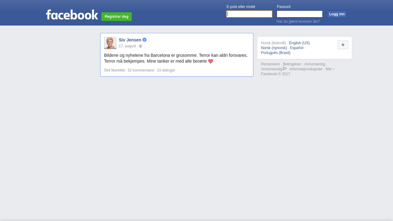 Bildene og nyhetene fra Barcelona er grusomme. Terror kan aldri forsvares. Terror må bekjempes. Mine tanker er med alle berørte ❤️
