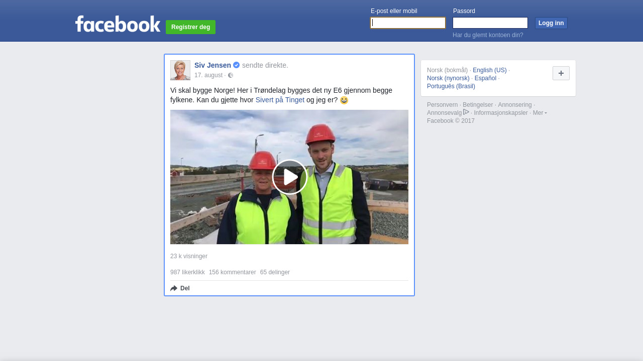 Siv.Jensen.FrP på Facebook