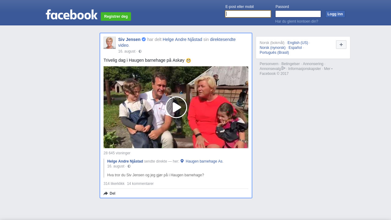 Orginalt innlegg på Facebook