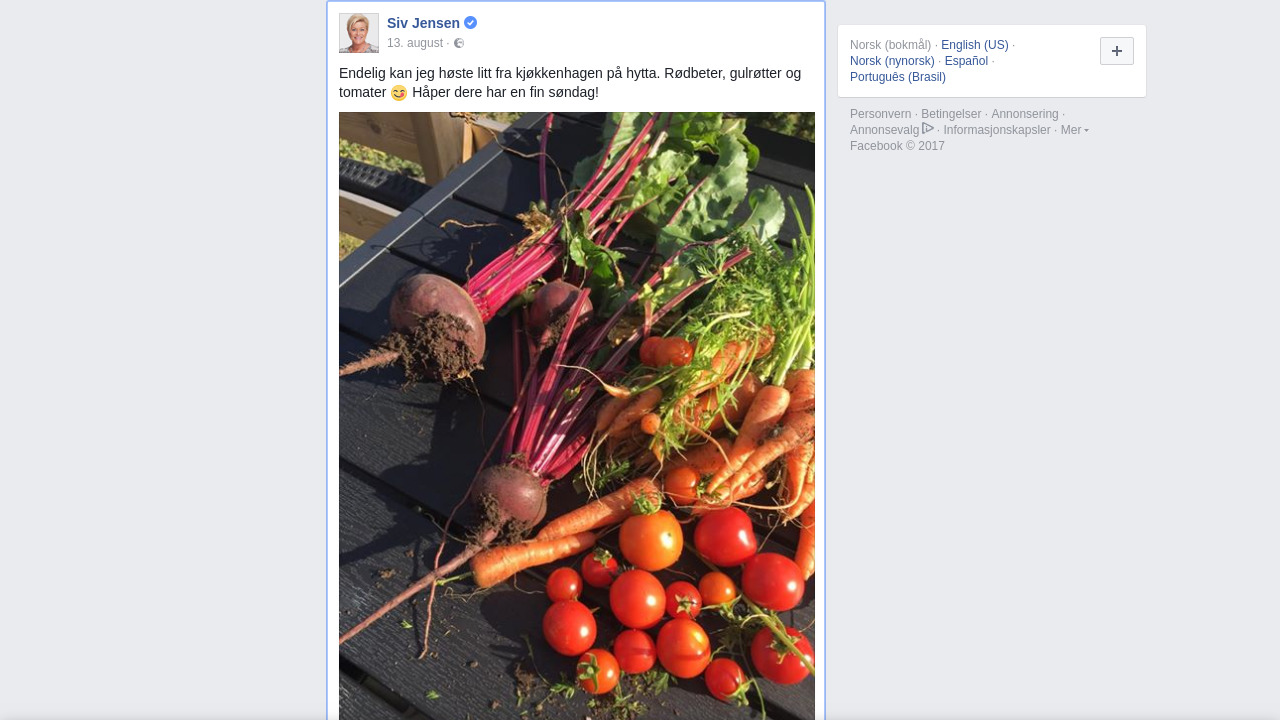 Orginalt innlegg på Facebook