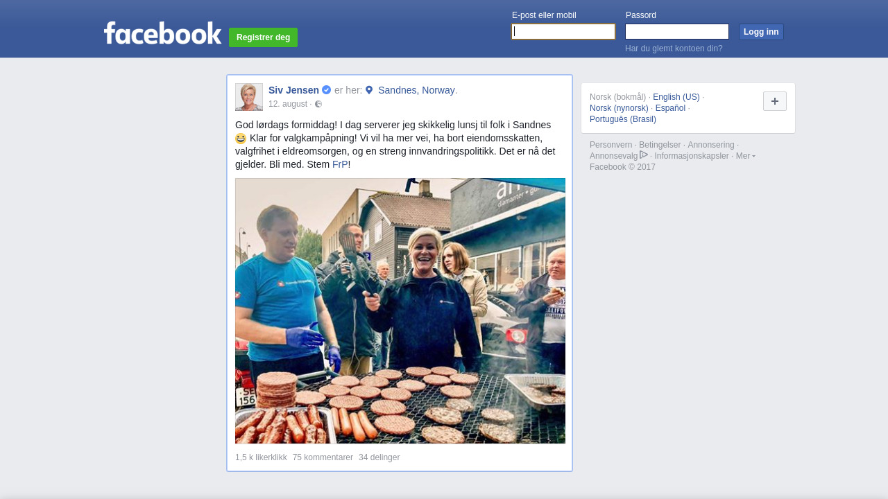 God lørdags formiddag! I dag serverer jeg skikkelig lunsj til folk i Sandnes 😀 Klar for valgkampåpning! Vi vil ha mer vei, ha bort eiendomsskatten, valgfrihet i eldreomsorgen, og en streng innvandringspolitikk. Det er nå det gjelder. Bli med. Stem FrP!