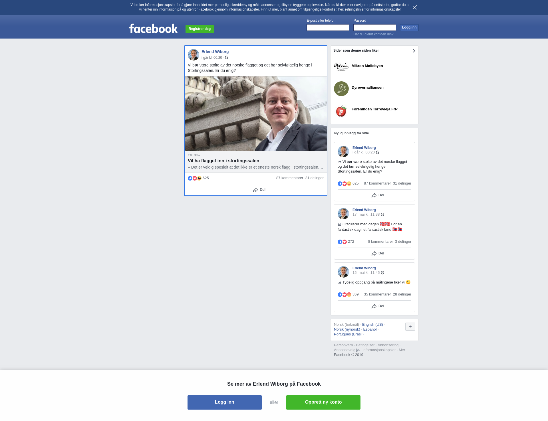 – Det er veldig spesielt at det ikke er et eneste norsk flagg i stortingssalen, mener Erlend Wiborg.