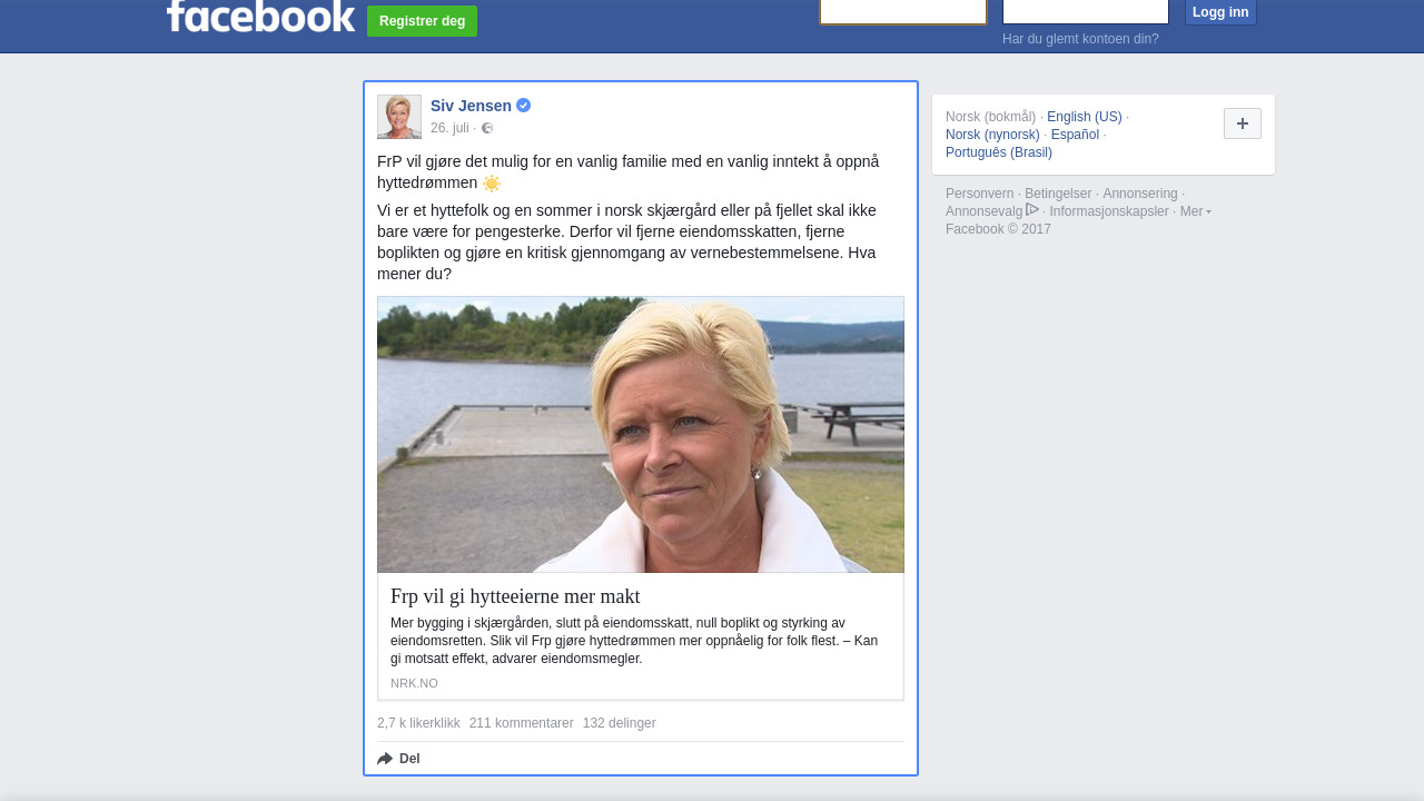 FrP vil gjøre det mulig for en vanlig familie med en vanlig inntekt å oppnå hyttedrømmen ☀️