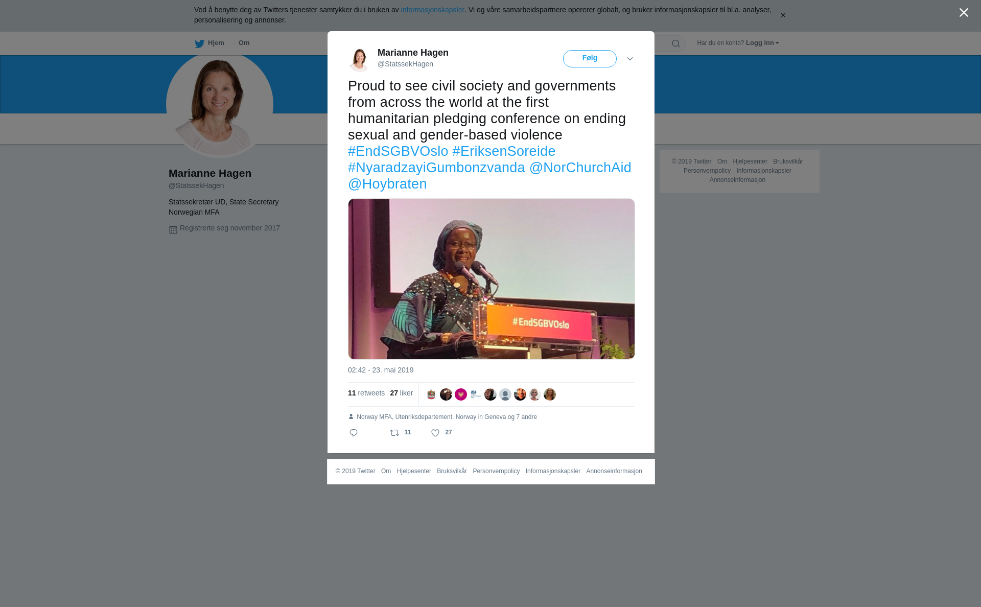 RT @StatssekHagen: Proud to see civil society and governments from across the world at the first humanitarian pledging conference on ending sexual and gender-based violence #EndSGBVOslo #EriksenSoreide #NyaradzayiGumbonzvanda @NorChurchAid @Hoybraten https://t.co/kQ4jThXRn3