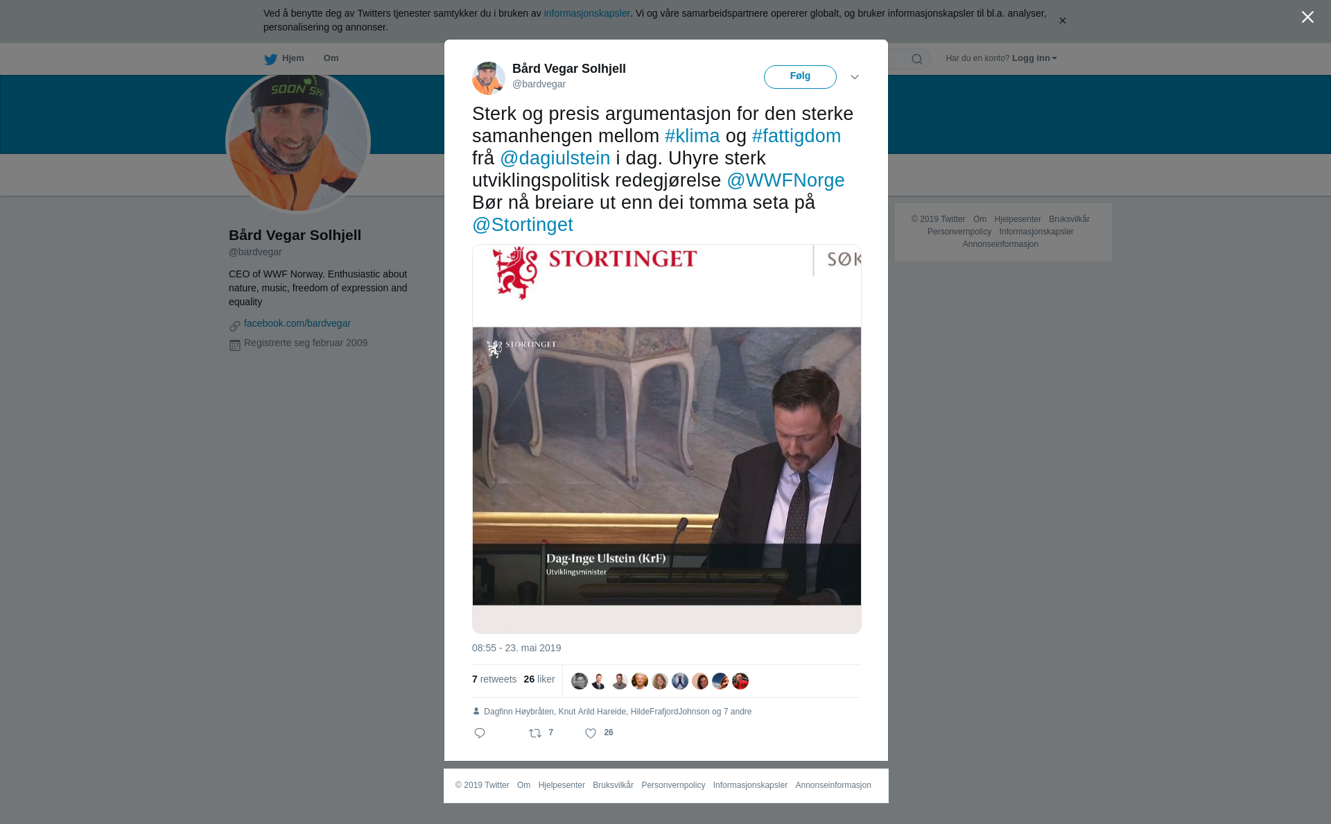 RT @bardvegar: Sterk og presis argumentasjon for den sterke samanhengen mellom #klima og #fattigdom frå @dagiulstein i dag. Uhyre sterk utviklingspolitisk redegjørelse @WWFNorge Bør nå breiare ut enn dei tomma seta på @Stortinget https://t.co/GeEGDXubL7