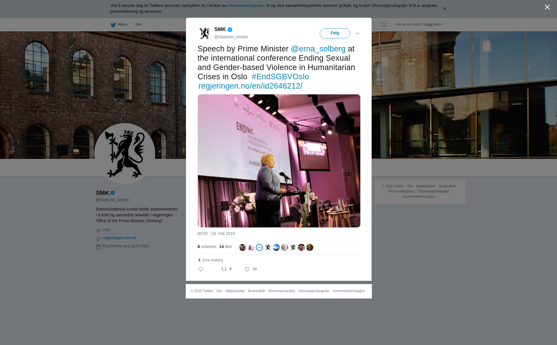 Speech by Prime Minister @erna_solberg at the international conference Ending Sexual and Gender-based Violence in Humanitarian Crises in Oslo #EndSGBVOslo https://t.co/5lChpKv7bk https://t.co/gc284LK32e