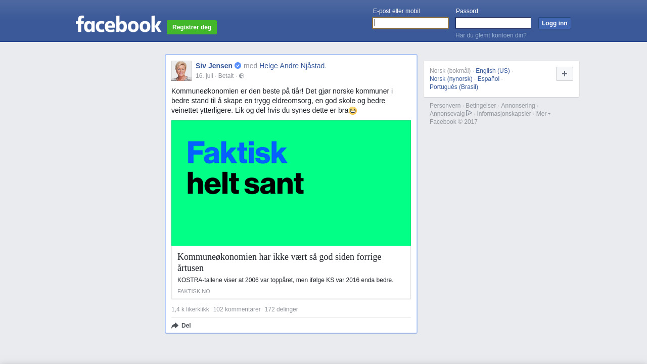 Siv.Jensen.FrP på Facebook