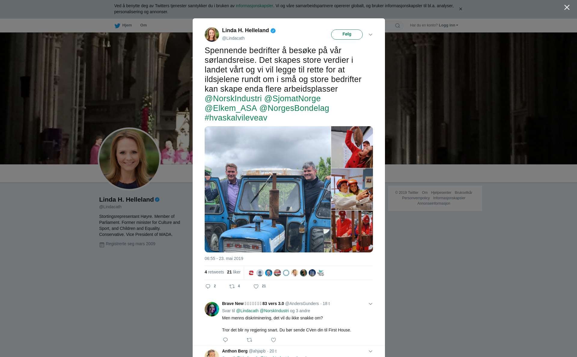RT @Lindacath: Spennende bedrifter å besøke på vår sørlandsreise. Det skapes store verdier i landet vårt og vi vil legge til rette for at ildsjelene rundt om i små og store bedrifter kan skape enda flere arbeidsplasser @NorskIndustri @SjomatNorge @Elkem_ASA @NorgesBondelag #hvaskalvileveav https://t.co/HArPOeArO3