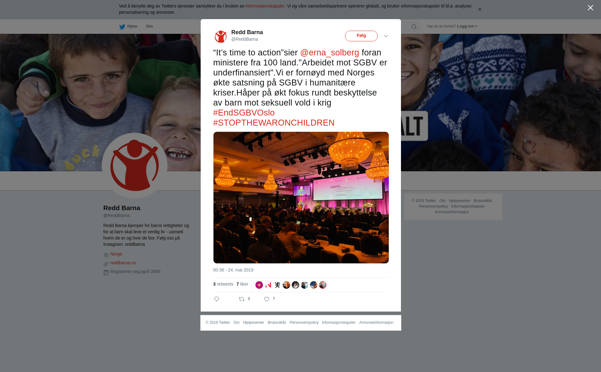 RT @ReddBarna: “It’s time to action”sier @erna_solberg foran ministere fra 100 land."Arbeidet mot SGBV er underfinansiert".Vi er fornøyd med Norges økte satsning på SGBV i humanitære kriser.Håper på økt fokus rundt beskyttelse av barn mot seksuell vold i krig #EndSGBVOslo #STOPTHEWARONCHILDREN https://t.co/Q30MdkHDKJ