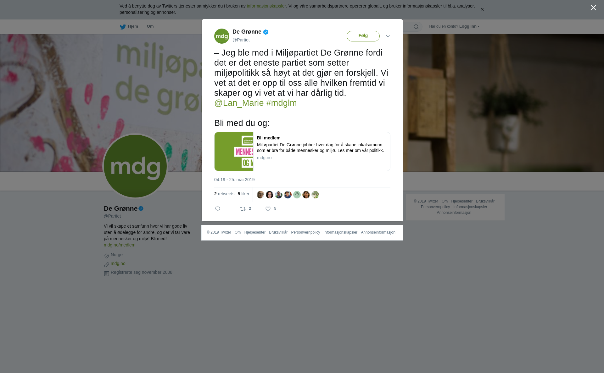 – Jeg ble med i Miljøpartiet De Grønne fordi det er det eneste partiet som setter miljøpolitikk så høyt at det gjør en forskjell. Vi vet at det er opp til oss alle hvilken fremtid vi skaper og vi vet at vi har dårlig tid. @Lan_Marie #mdglm