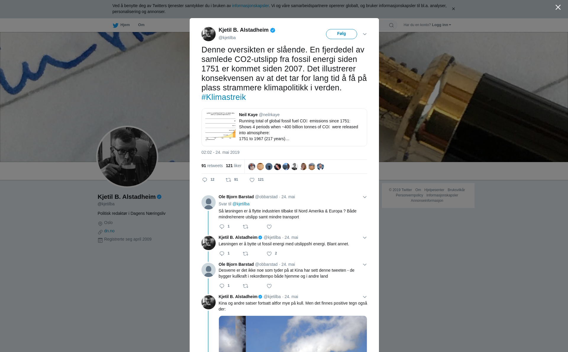 RT @kjetilba: Denne oversikten er slående. En fjerdedel av samlede CO2-utslipp fra fossil energi siden 1751 er kommet siden 2007. Det illustrerer konsekvensen av at det tar for lang tid å få på plass strammere klimapolitikk i verden. #Klimastreik https://t.co/4XXXJpbvvC