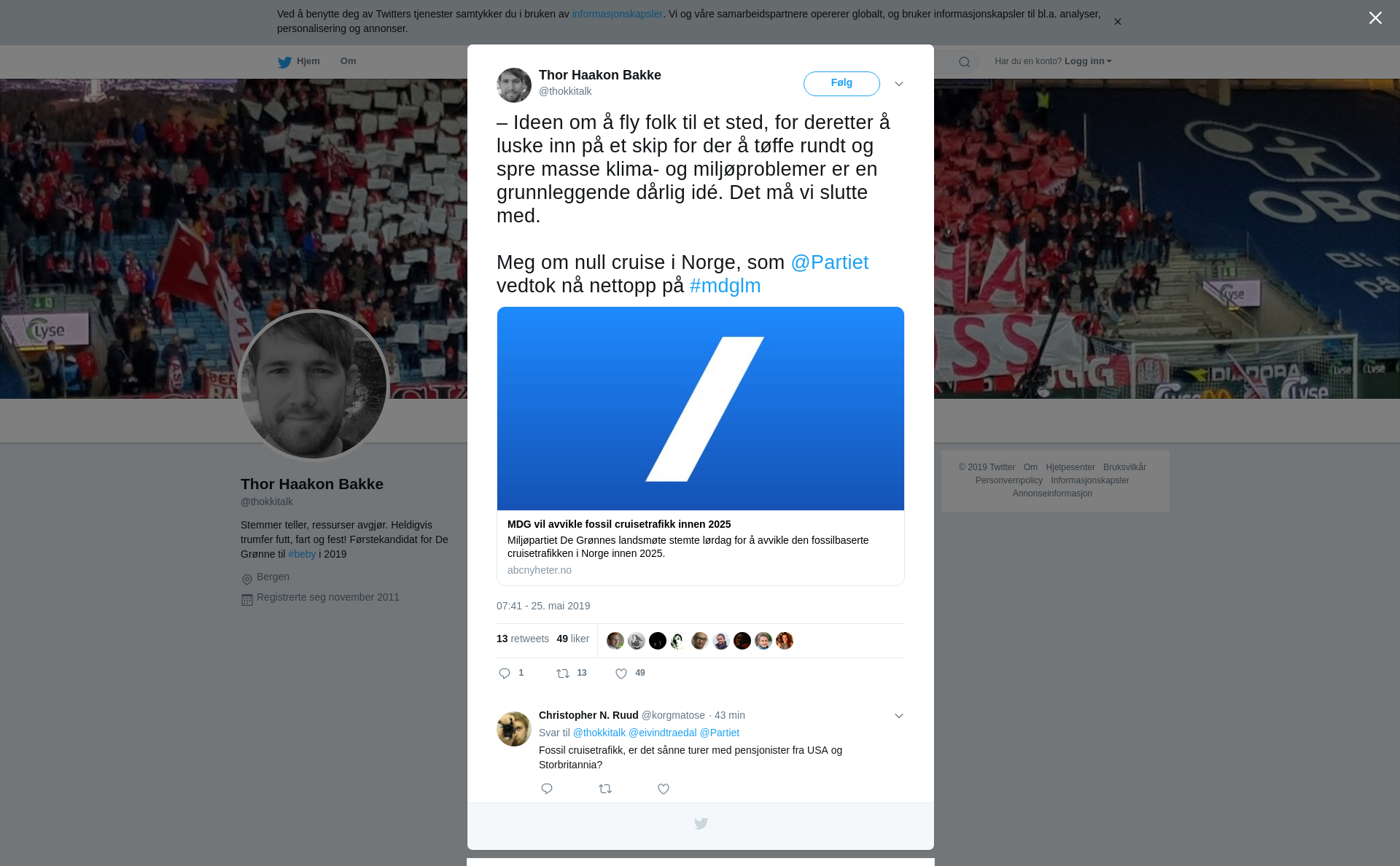 Meg om null cruise i Norge, som @Partiet vedtok nå nettopp på #mdglm