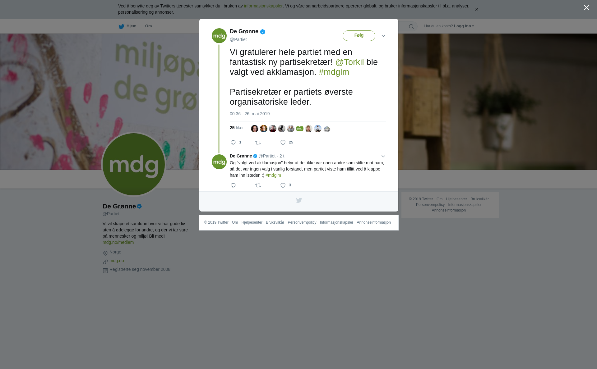 Vi gratulerer hele partiet med en fantastisk ny partisekretær! @Torkil ble valgt ved akklamasjon. #mdglm Partisekretær er partiets øverste organisatoriske leder.