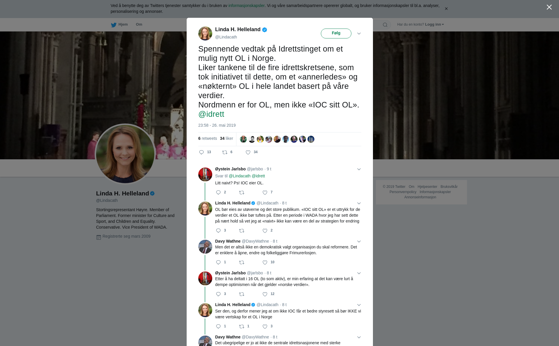RT @Lindacath: Spennende vedtak på Idrettstinget om et mulig nytt OL i Norge. Liker tankene til de fire idrettskretsene, som tok initiative…