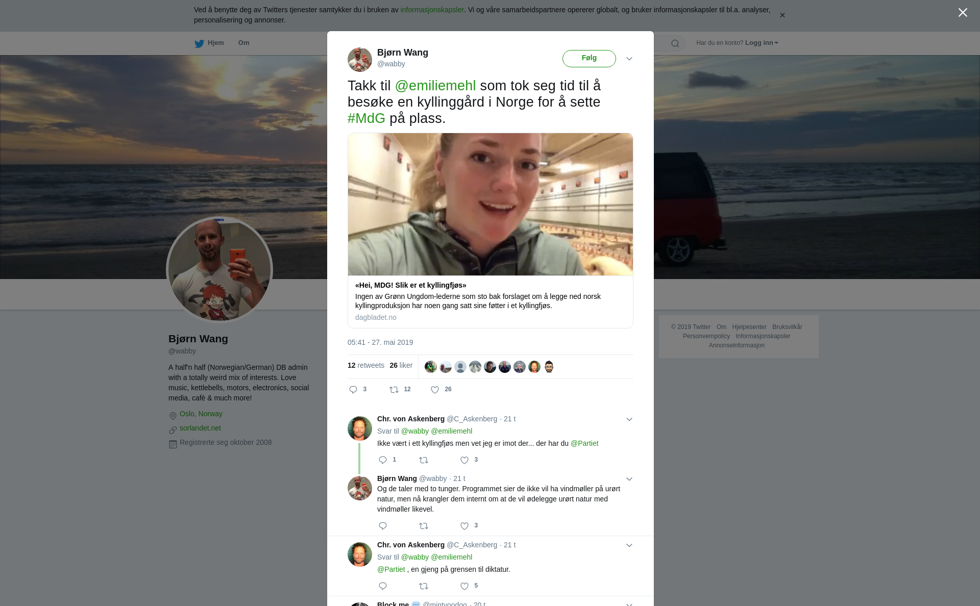 RT @wabby: Takk til @emiliemehl som tok seg tid til å besøke en kyllinggård i Norge for å sette #MdG på plass. https://t.co/jbgYQx1isP