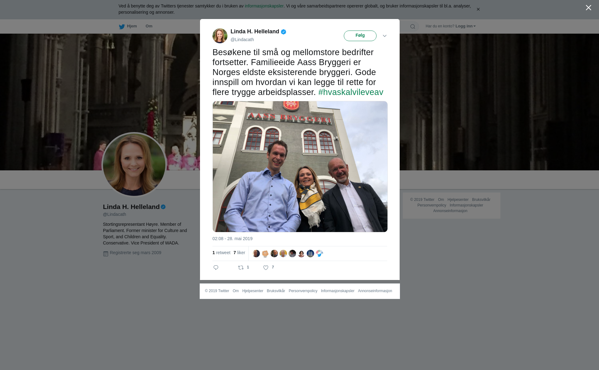 Besøkene til små og mellomstore bedrifter fortsetter. Familieeide Aass Bryggeri er Norges eldste eksisterende bryggeri. Gode innspill om hvordan vi kan legge til rette for flere trygge arbeidsplasser. #hvaskalvileveav https://t.co/ARAgx8CbFd