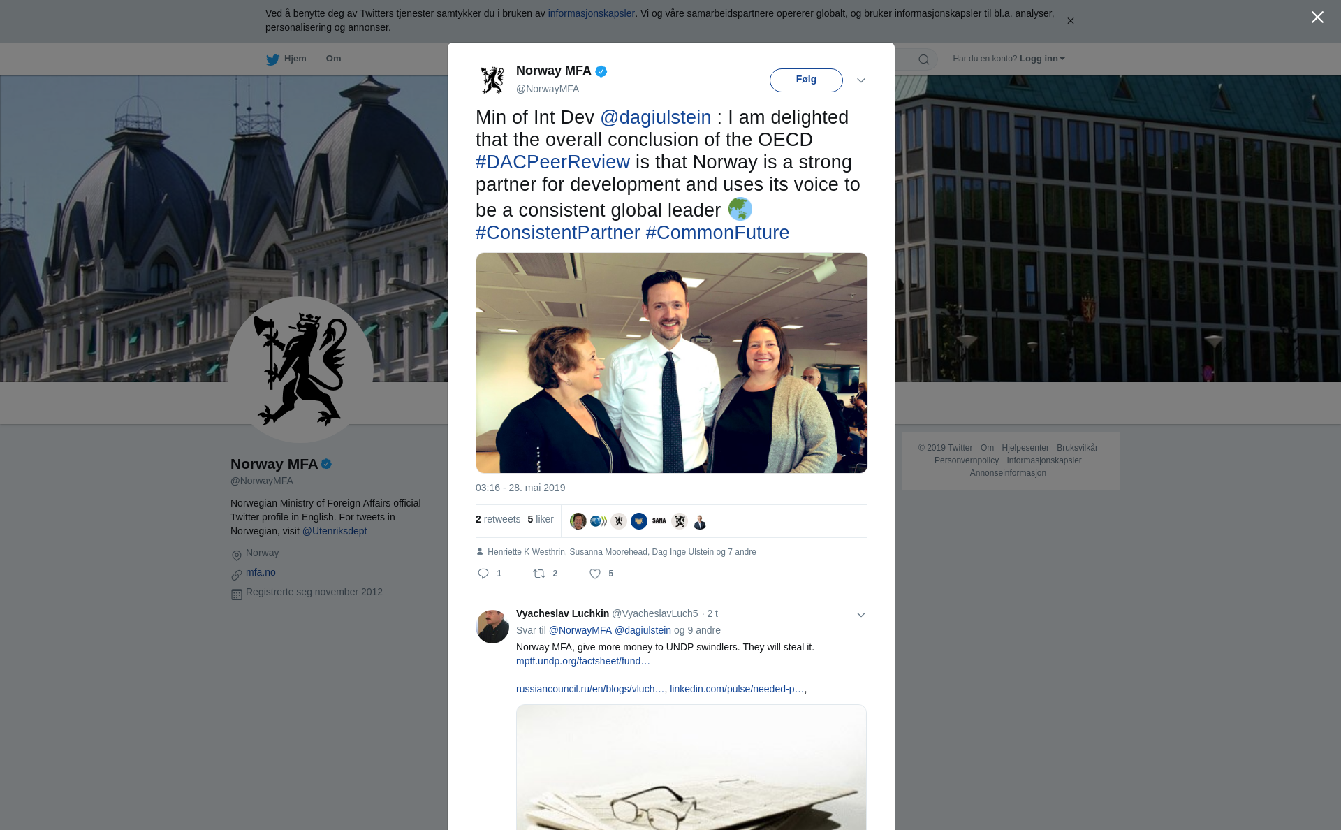 Min of Int Dev @dagiulstein : I am delighted that the overall conclusion of the OECD #DACPeerReview is that Norway is a strong partner for development and uses its voice to be a consistent global leader 🌏 #ConsistentPartner #CommonFuture https://t.co/aj48ZfrbWf