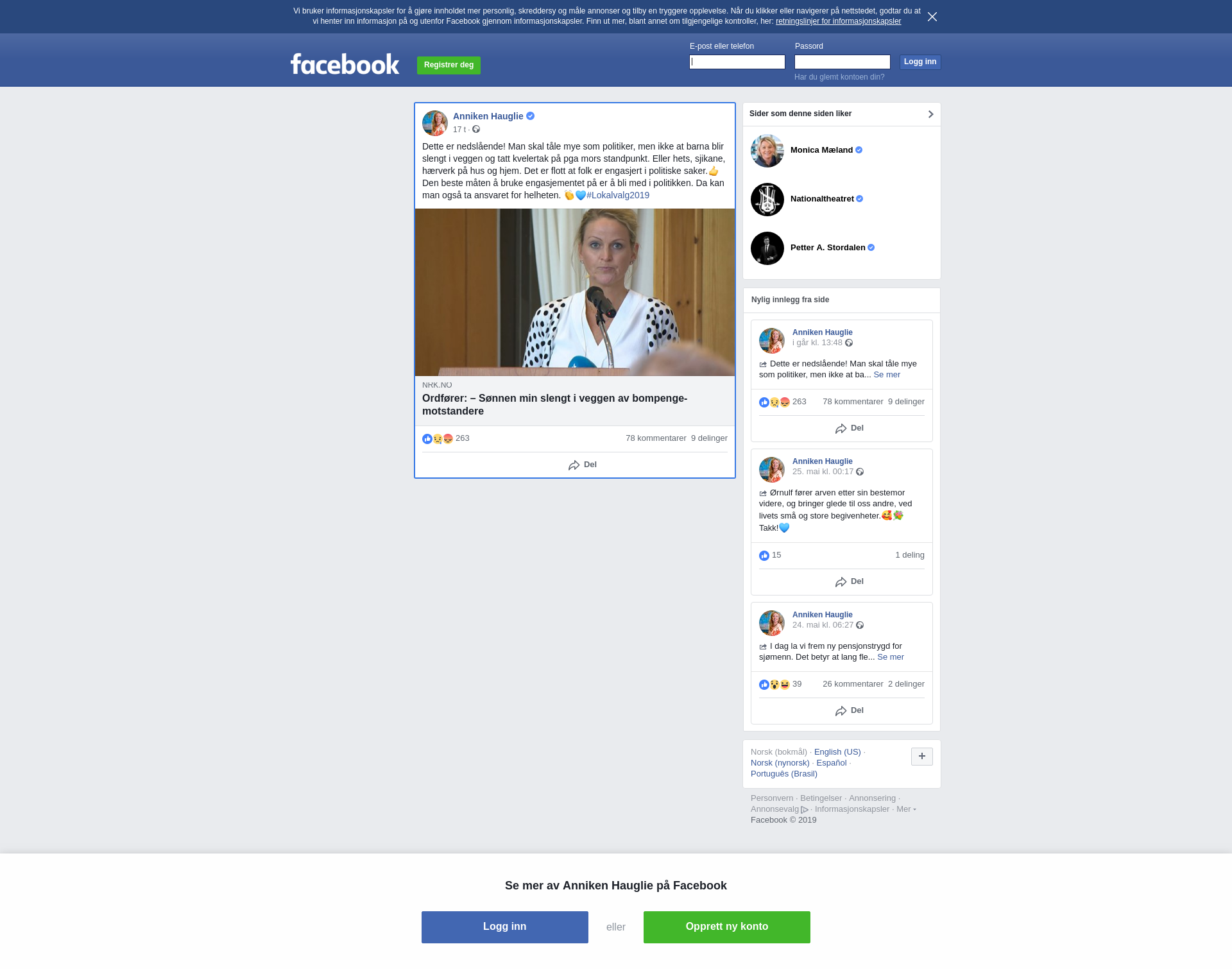Dette er nedslående! Man skal tåle mye som politiker, men ikke at barna blir slengt i veggen og tatt kvelertak på pga mors standpunkt. Eller hets, sjikane, hærverk på hus og hjem. Det er flott at folk er engasjert i politiske saker.👍 Den beste måten å bruke engasjementet på er å bli med i politikken. Da kan man også ta ansvaret for helheten. 👏💙#Lokalvalg2019