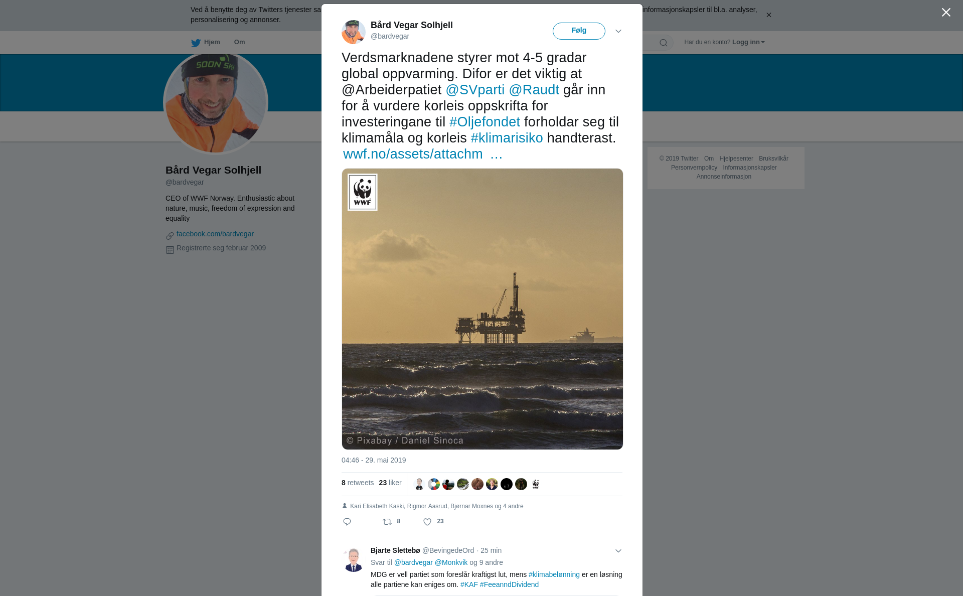 RT @bardvegar: Verdsmarknadene styrer mot 4-5 gradar global oppvarming. Difor er det viktig at @Arbeiderpatiet @SVparti @Raudt går inn for å vurdere korleis oppskrifta for investeringane til #Oljefondet forholdar seg til klimamåla og korleis #klimarisiko handterast.