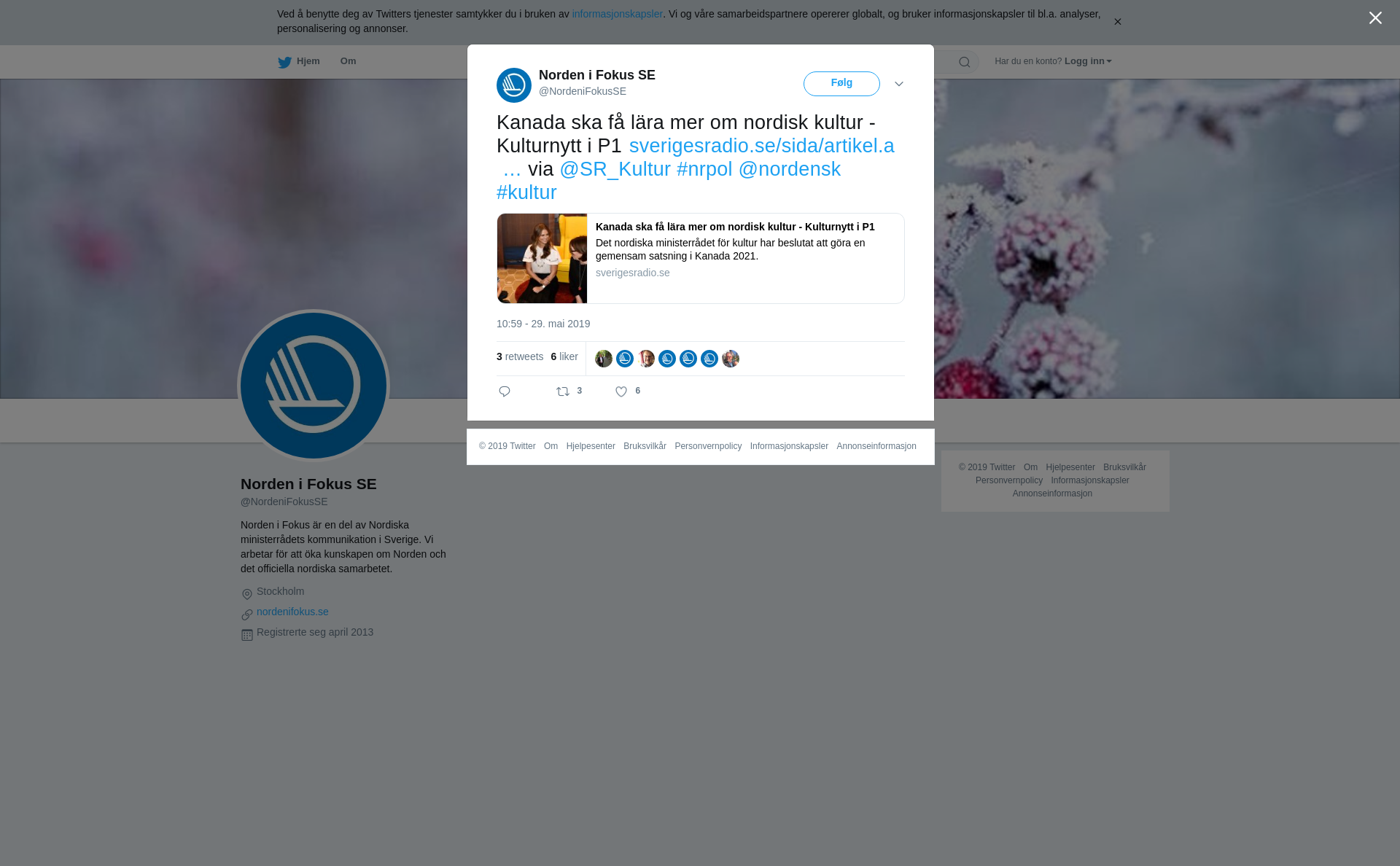 RT @NordeniFokusSE: Kanada ska få lära mer om nordisk kultur - Kulturnytt i P1 https://t.co/f8pMOul6E3 via @SR_Kultur #nrpol @nordensk #kultur