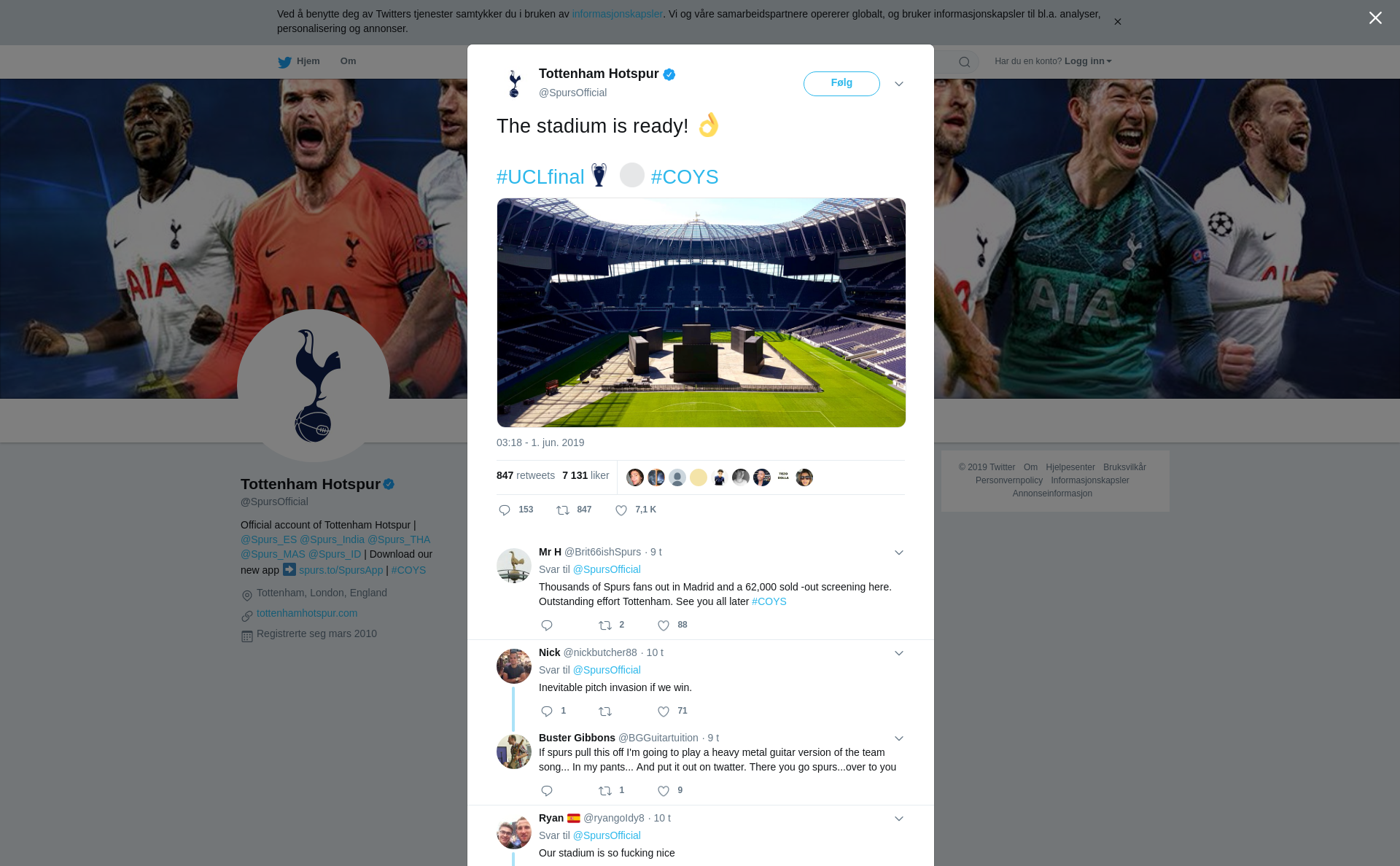 RT @SpursOfficial: The stadium is ready! 👌 #UCLfinal ⚪️ #COYS https://t.co/2rSjEicgPf