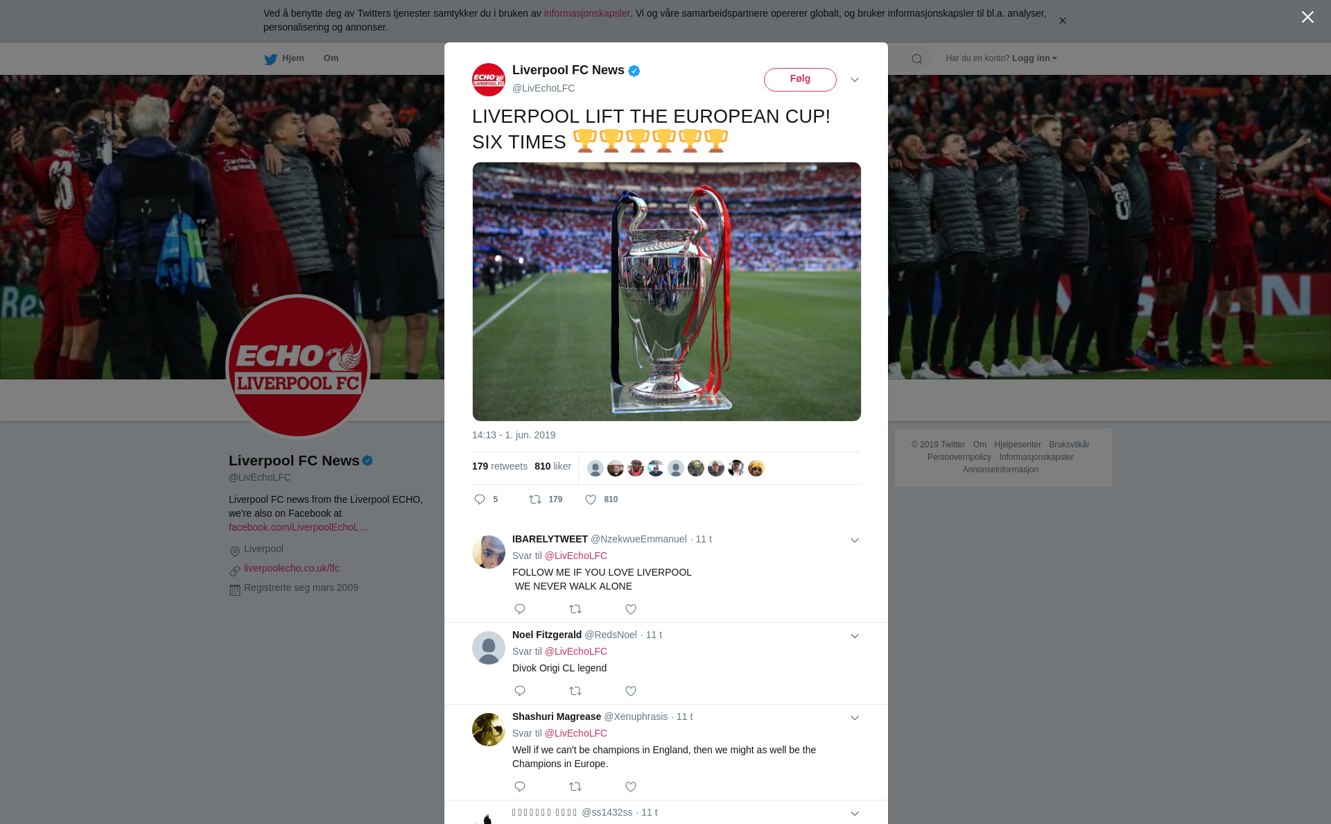 RT @LivEchoLFC: LIVERPOOL LIFT THE EUROPEAN CUP! SIX TIMES 🏆🏆🏆🏆🏆🏆 https://t.co/9Ea8ta97rZ