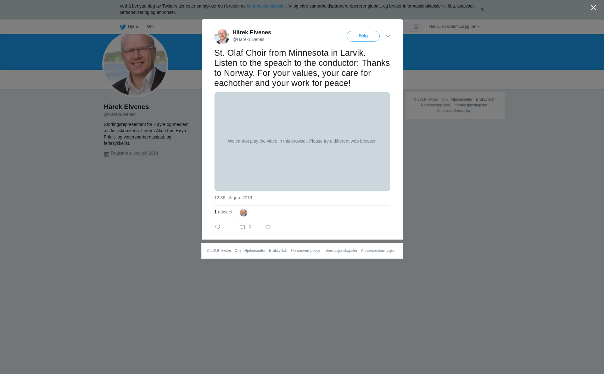 St. Olaf Choir from Minnesota in Larvik. Listen to the speach to the conductor: Thanks to Norway. For your values, your care for eachother and your work for peace! https://t.co/AYELUPUIEt
