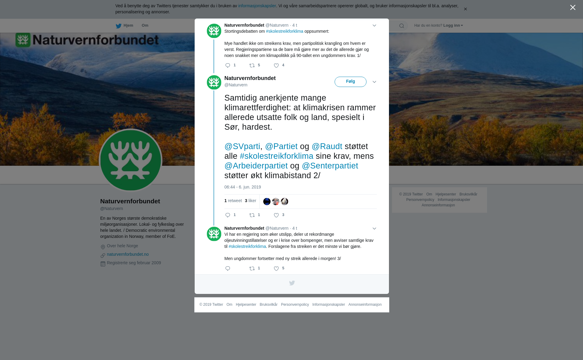 @SVparti, @Partiet og @Raudt støttet alle #skolestreikforklima sine krav, mens @Arbeiderpartiet og @Senterpartiet støtter økt klimabistand 2/