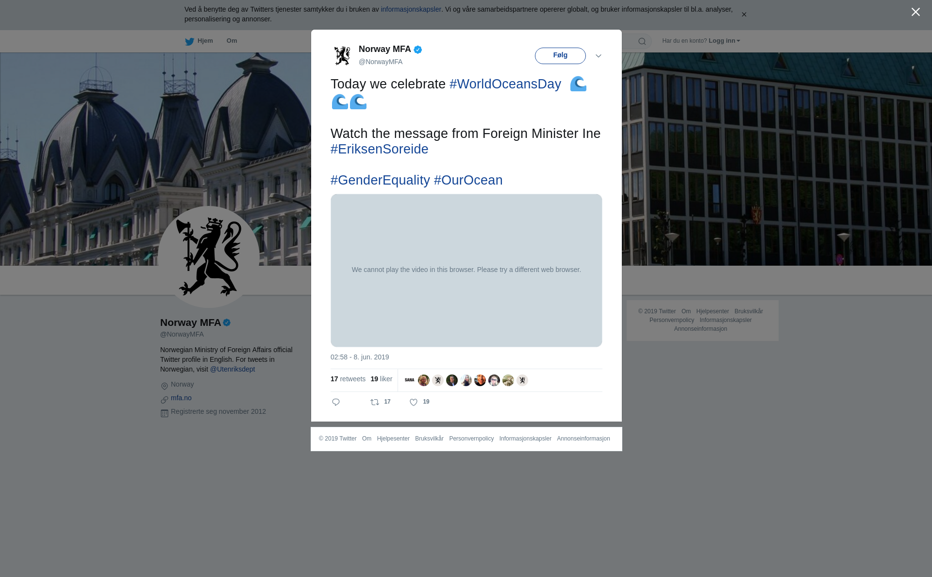 Today we celebrate #WorldOceansDay 🌊🌊🌊 Watch the message from Foreign Minister Ine #EriksenSoreide #GenderEquality #OurOcean https://t.co/XTvTXM7QM7