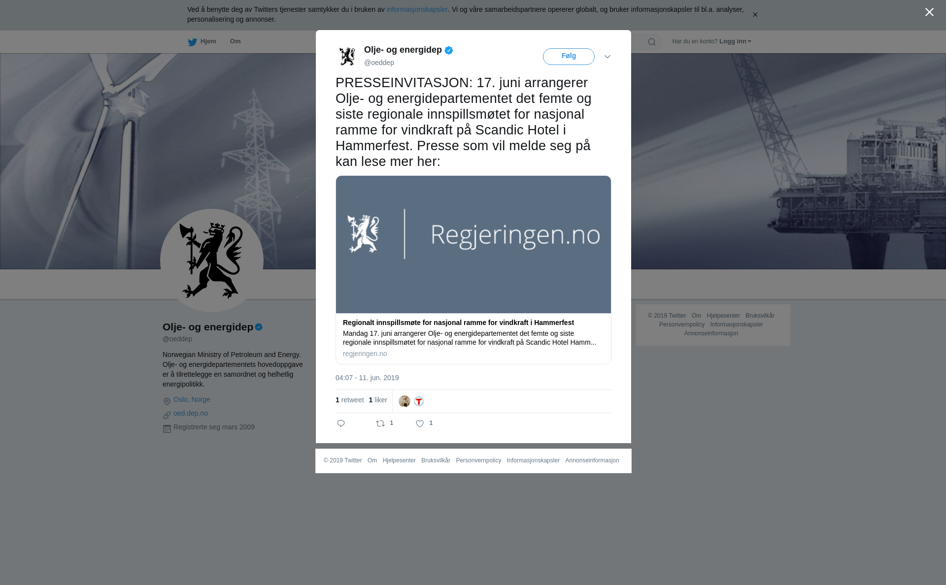 Mandag 17. juni arrangerer Olje- og energidepartementet det femte og siste regionale innspillsmøtet for nasjonal ramme for vindkraft på Scandic Hotel Hammerfest. Statssekretær Liv Lønnum (FrP) vil delta på møtet.
