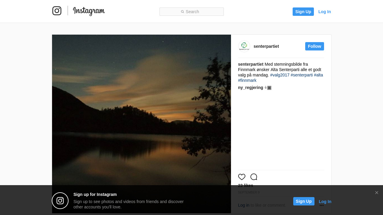 Med stemningsbilde fra Finnmark ønsker Alta Senterparti alle et godt valg på mandag. #valg2017 #senterparti #alta #finnmark