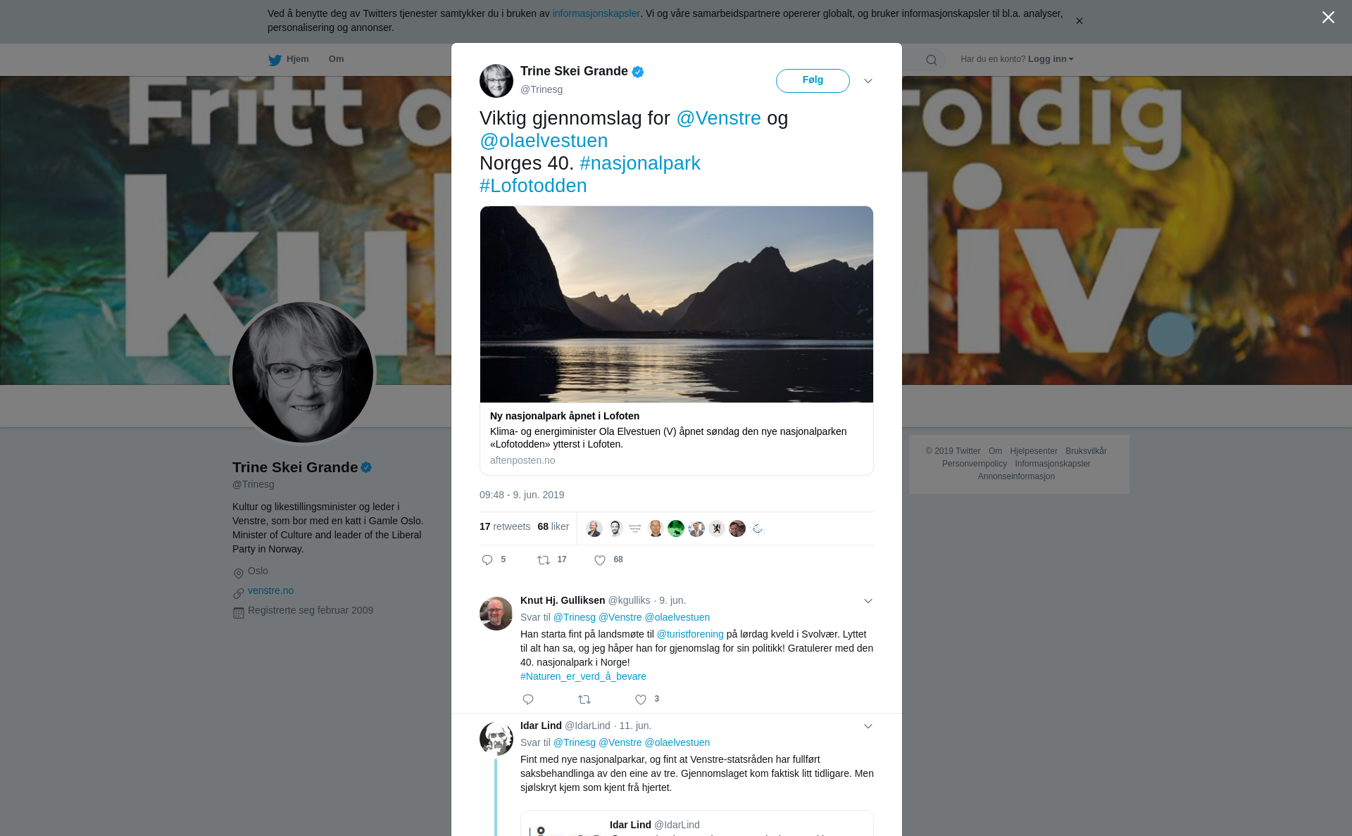 RT @Trinesg: Viktig gjennomslag for @Venstre og @olaelvestuen Norges 40. #nasjonalpark #Lofotodden https://t.co/wCPyGG8E7V