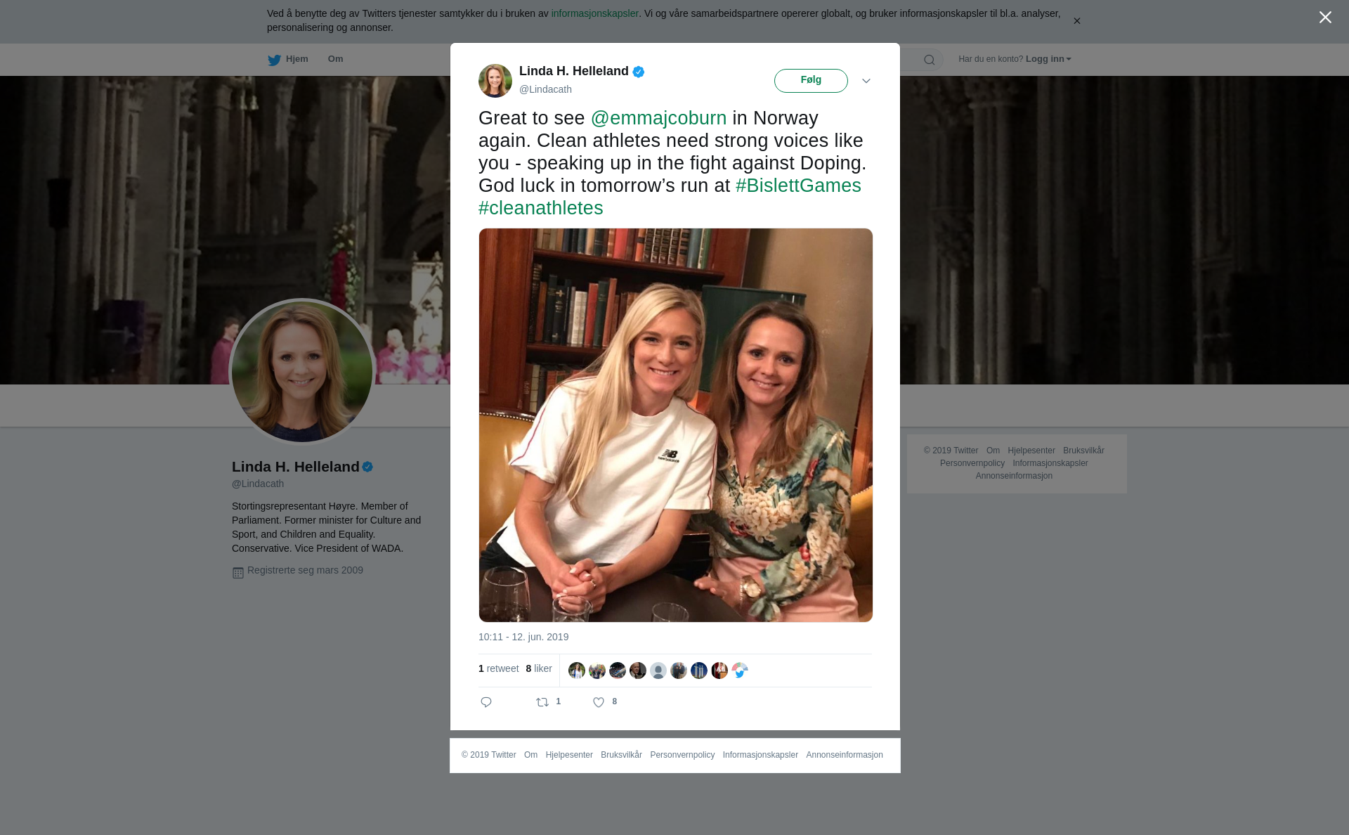 Great to see @emmajcoburn in Norway again. Clean athletes need strong voices like you - speaking up in the fight against Doping. God luck in tomorrow’s run at #BislettGames #cleanathletes https://t.co/bwF5Zp0klp