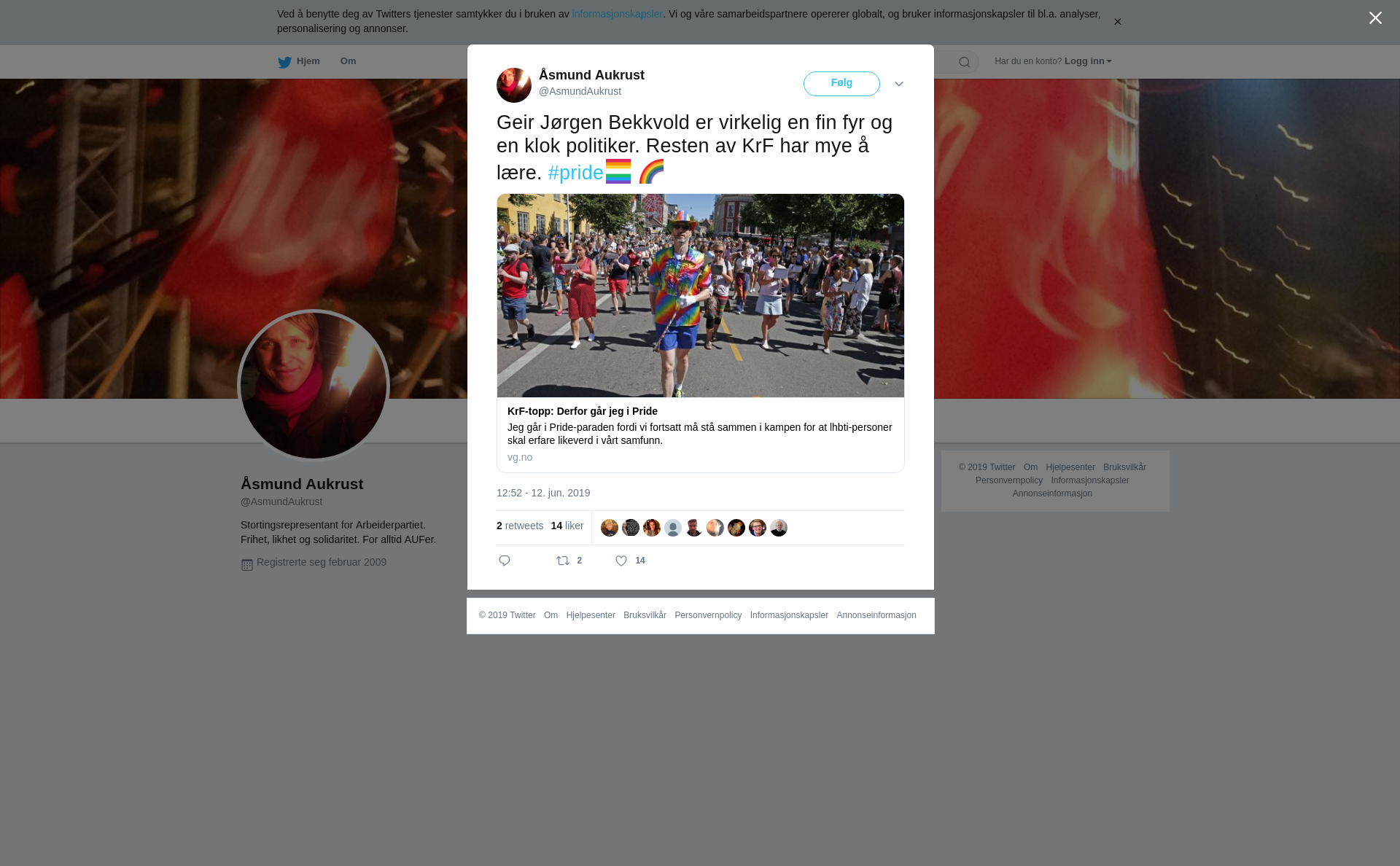 Geir Jørgen Bekkvold er virkelig en fin fyr og en klok politiker. Resten av KrF har mye å lære. #pride 🌈 https://t.co/Dtuor0KPwj