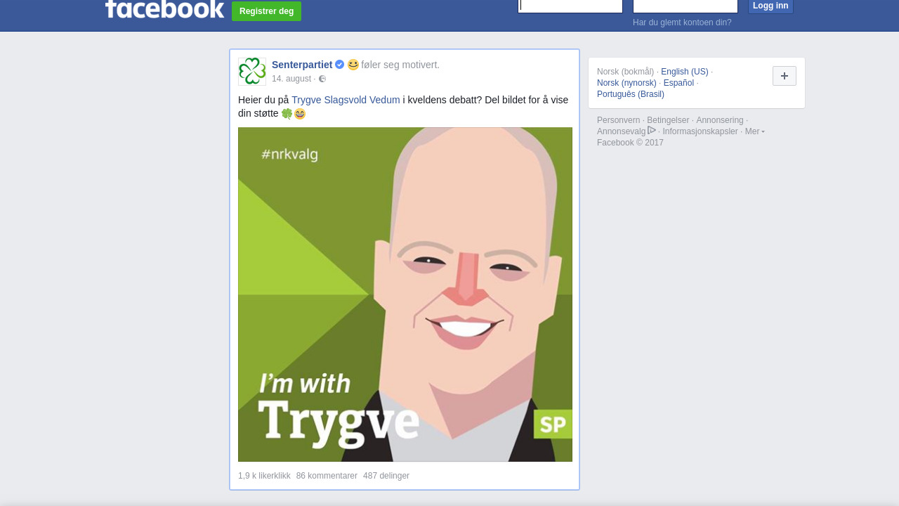 Heier du på Trygve Slagsvold Vedum i kveldens debatt? Del bildet for å vise din støtte 🍀😄