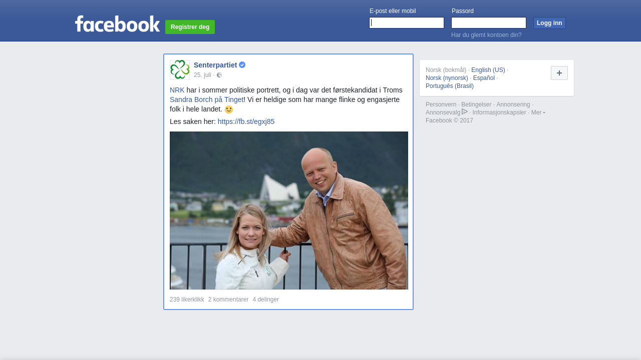NRK har i sommer politiske portrett, og i dag var det førstekandidat i Troms Sandra Borch på Tinget! Vi er heldige som har mange flinke og engasjerte folk i hele landet. :) Les saken her: https://fb.st/egxj85