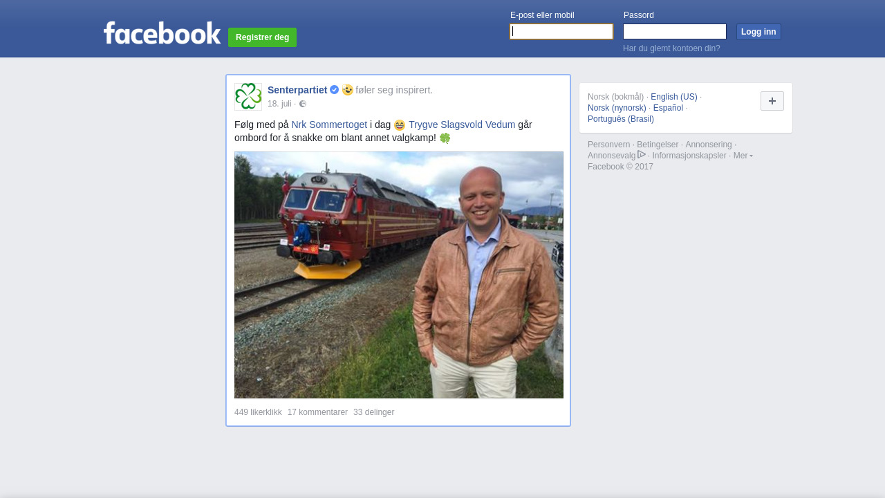 Følg med på Nrk Sommertoget i dag 😄 Trygve Slagsvold Vedum går ombord for å snakke om blant annet valgkamp! 🍀