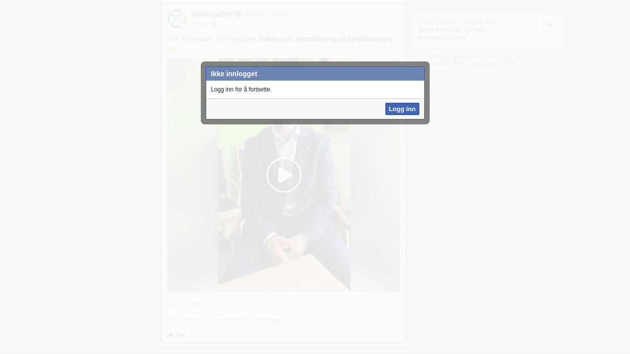 Geir Pollestad - Senterpartiet snakker om sentralisering og byråkratisering☀️