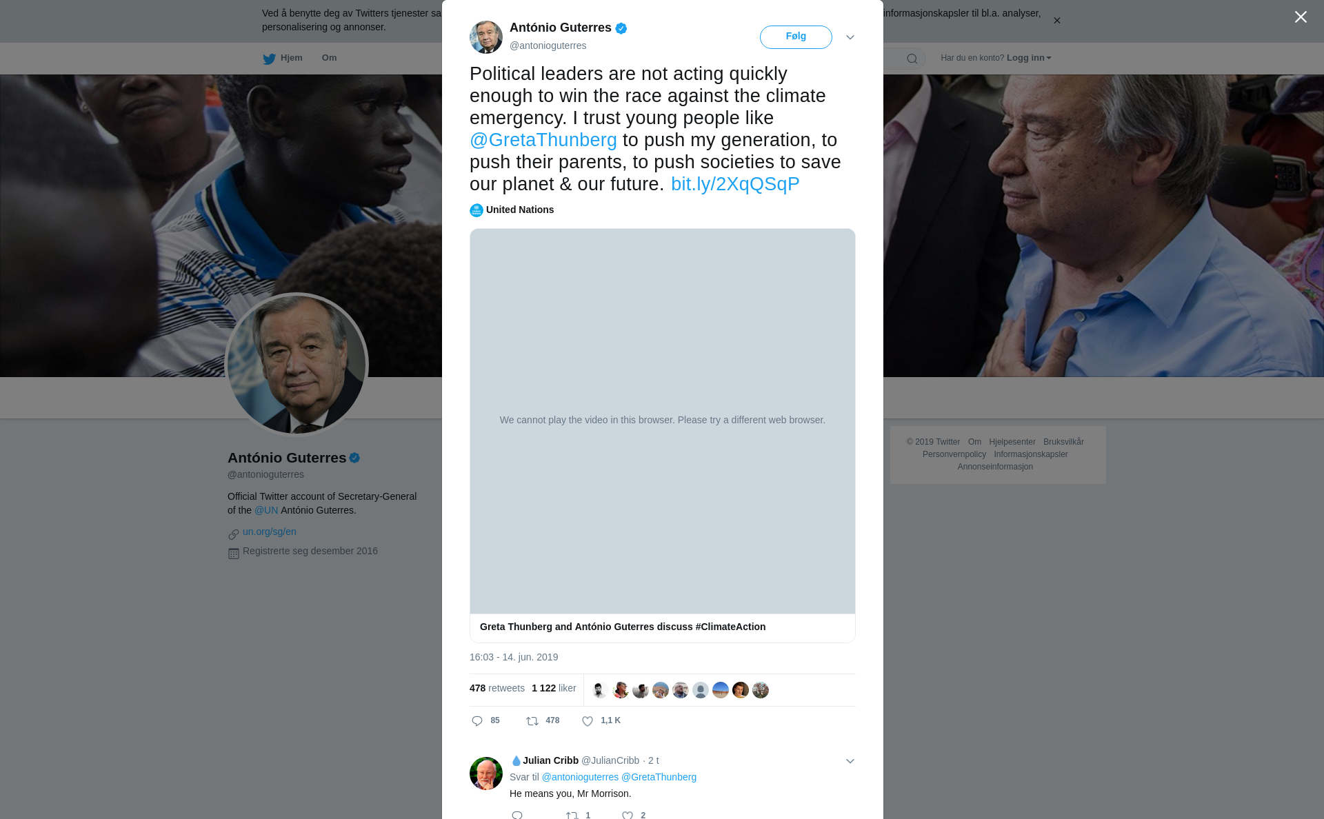 RT @antonioguterres: Political leaders are not acting quickly enough to win the race against the climate emergency. I trust young people like @GretaThunberg to push my generation, to push their parents, to push societies to save our planet & our future. https://t.co/gS46CG7VYn https://t.co/mWUa9d7a5k