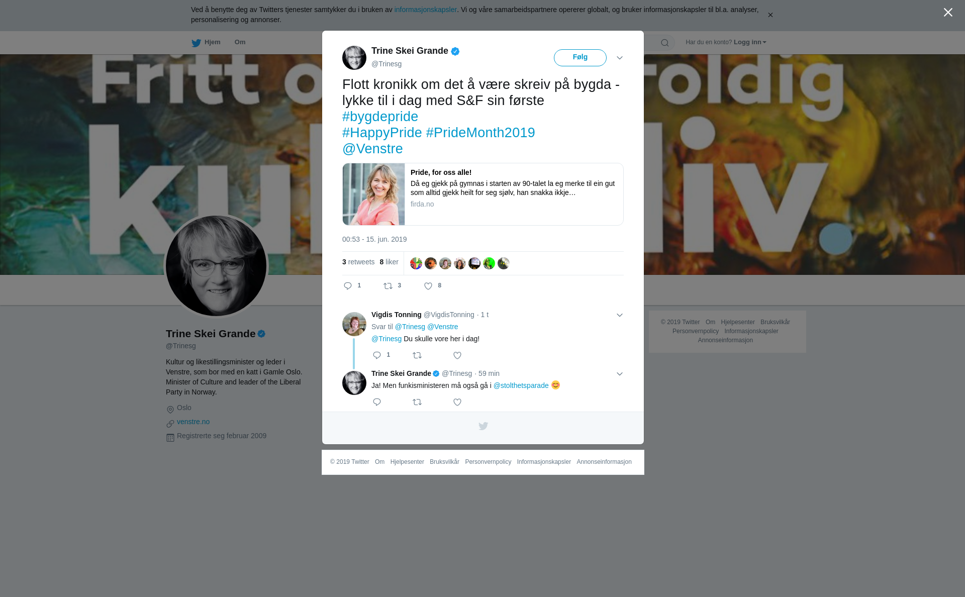Flott kronikk om det å være skreiv på bygda - lykke til i dag med S&F sin første #bygdepride #HappyPride #PrideMonth2019 @Venstre https://t.co/6uJgqKr3B7