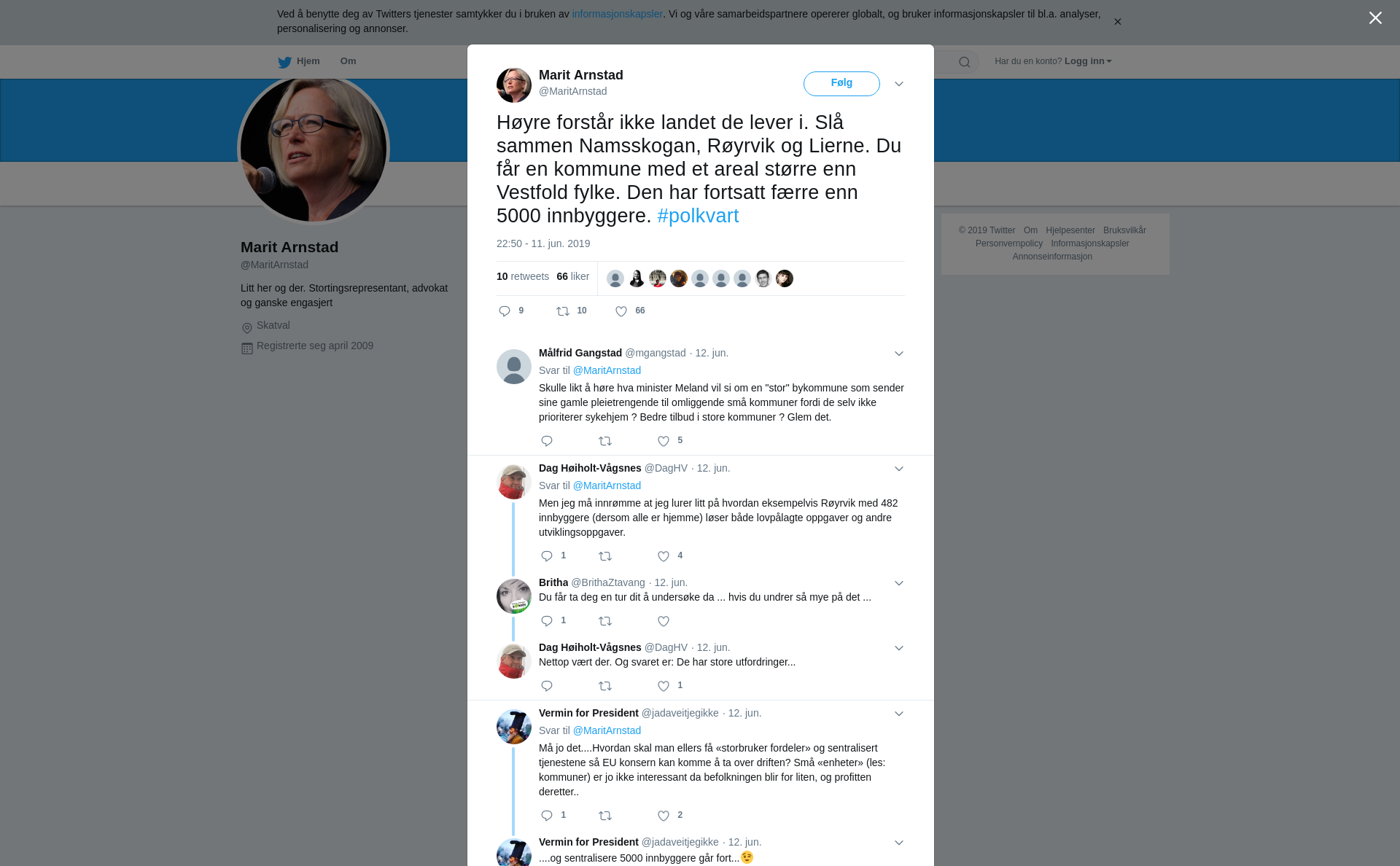 RT @MaritArnstad: Høyre forstår ikke landet de lever i. Slå sammen Namsskogan, Røyrvik og Lierne. Du får en kommune med et areal større enn Vestfold fylke. Den har fortsatt færre enn 5000 innbyggere. #polkvart