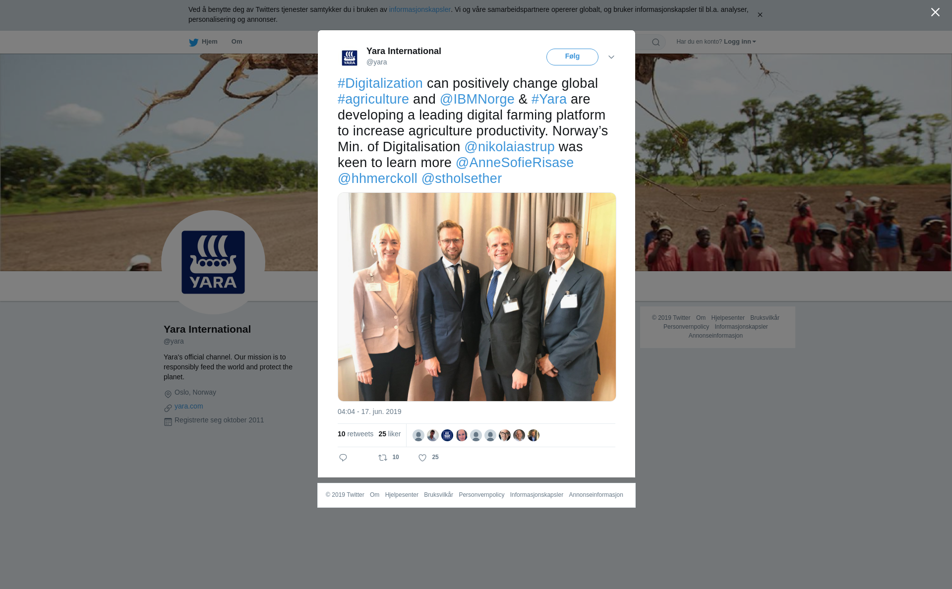 RT @yara: #Digitalization can positively change global #agriculture and @IBMNorge & #Yara are developing a leading digital farming platform to increase agriculture productivity. Norway’s Min. of Digitalisation @nikolaiastrup was keen to learn more @AnneSofieRisase @hhmerckoll @stholsether https://t.co/Q4r2RwlxLD