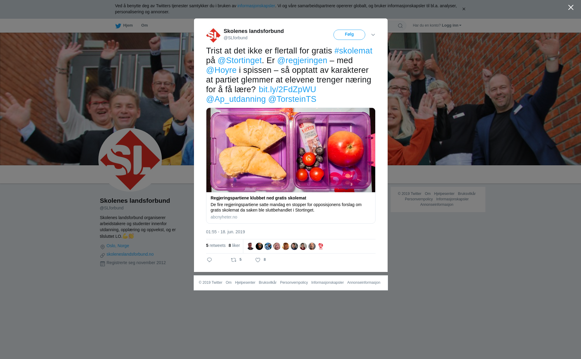 RT @SLforbund: Trist at det ikke er flertall for gratis #skolemat på @Stortinget. Er @regjeringen – med @Hoyre i spissen – så opptatt av karakterer at partiet glemmer at elevene trenger næring for å få lære? https://t.co/pe5GfHObh8 @Ap_utdanning @TorsteinTS