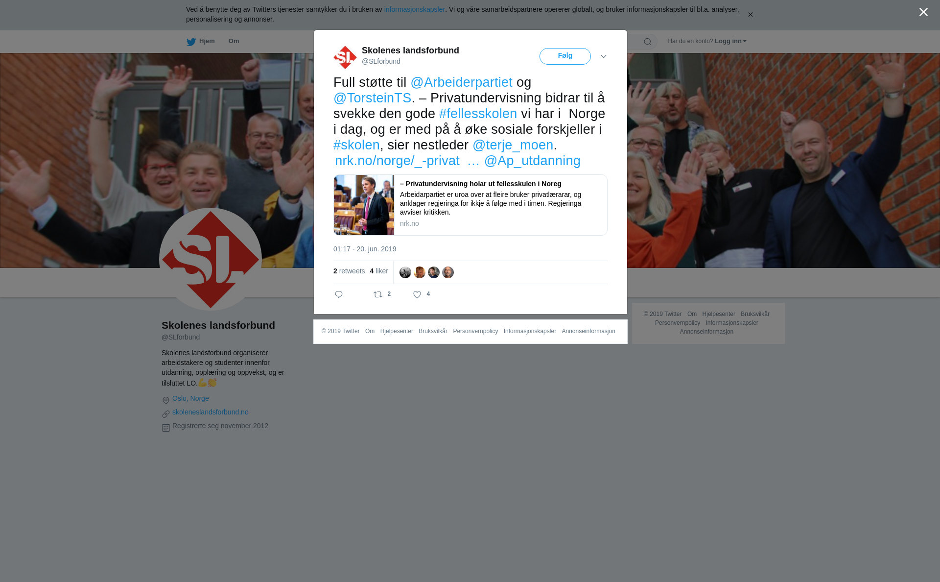 RT @SLforbund: Full støtte til @Arbeiderpartiet og @TorsteinTS. – Privatundervisning bidrar til å svekke den gode #fellesskolen vi har i Norge i dag, og er med på å øke sosiale forskjeller i #skolen, sier nestleder @terje_moen. https://t.co/mKeB8shKHU @Ap_utdanning