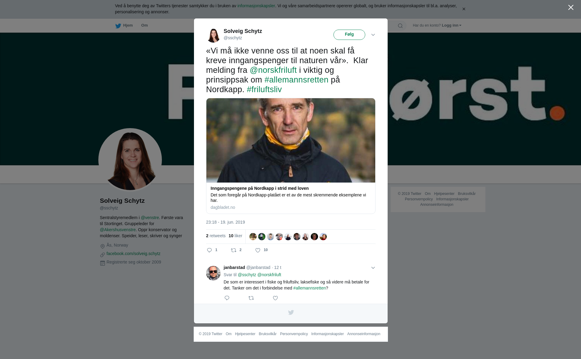 RT @sschytz: «Vi må ikke venne oss til at noen skal få kreve inngangspenger til naturen vår». Klar melding fra @norskfriluft i viktig og prinsippsak om #allemannsretten på Nordkapp. #friluftsliv https://t.co/xFt0Cy9ffR