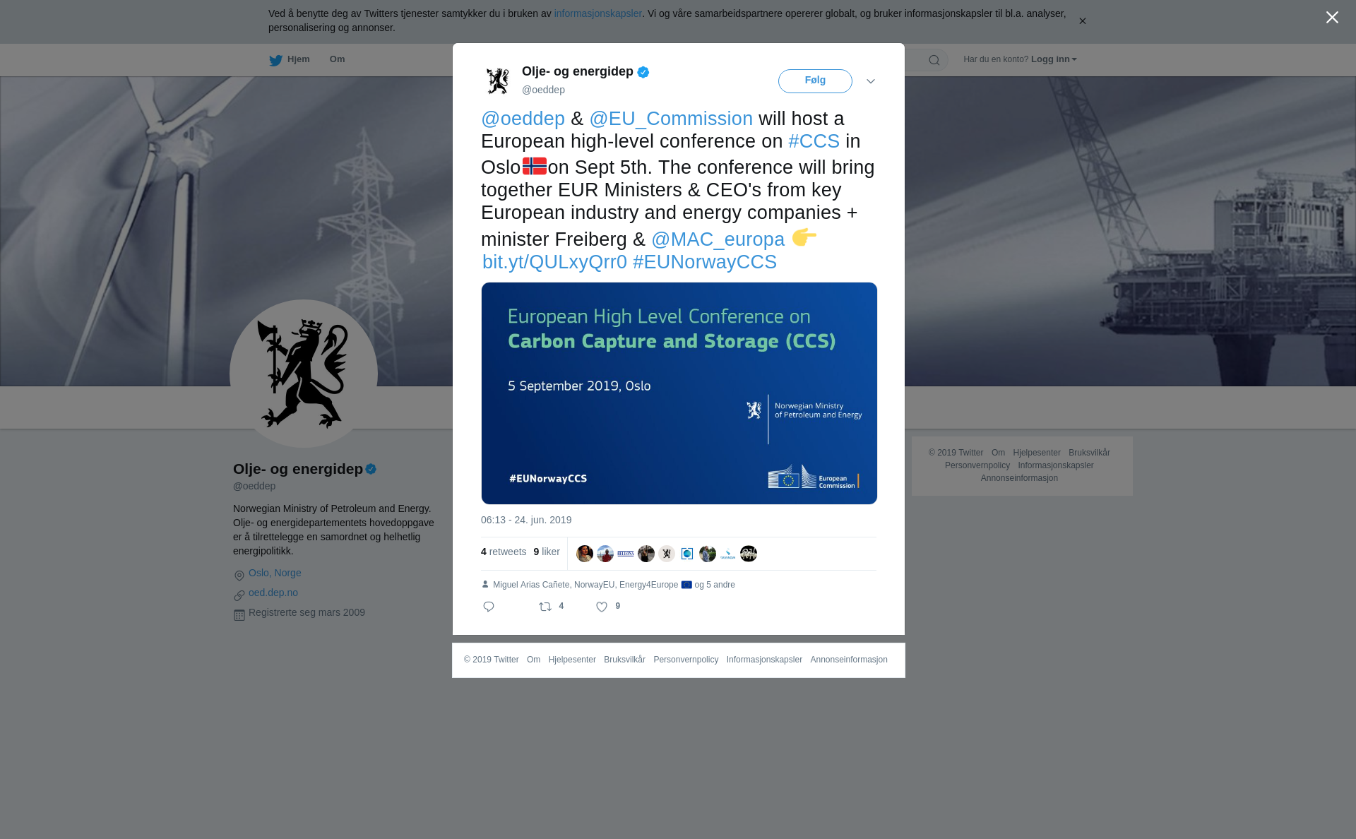 @oeddep & @EU_Commission will host a European high-level conference on #CCS in Oslo🇳🇴on Sept 5th. The conference will bring together EUR Ministers & CEO's from key European industry and energy companies + minister Freiberg & @MAC_europa 👉 https://t.co/Y1tdngoyGl #EUNorwayCCS https://t.co/qHwXEbZ5kF